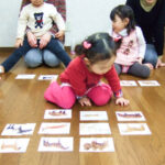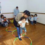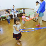 1~3歳児は親子のふれあいを大切に、リズム感や良い耳を作ると同時に、カード・フープ・ビーズ・ボールなどの教具を使い、表現力・集中力・記憶力・コミュニケーション力・社会性・協調性などを養います。